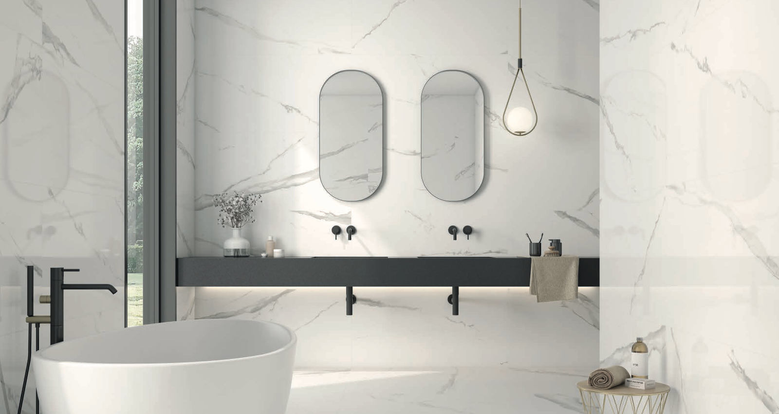 Formatos pequenos e grandes. Fachadas. Revestimentos. Decorações. Essenza está disponível numa vasta gama de cores neutras: bianco, bege, pérola, tortora, grigio e nero. Tons muito elegantes e sóbrios para todos os espaços: desde escritórios a restaurantes, lojas...