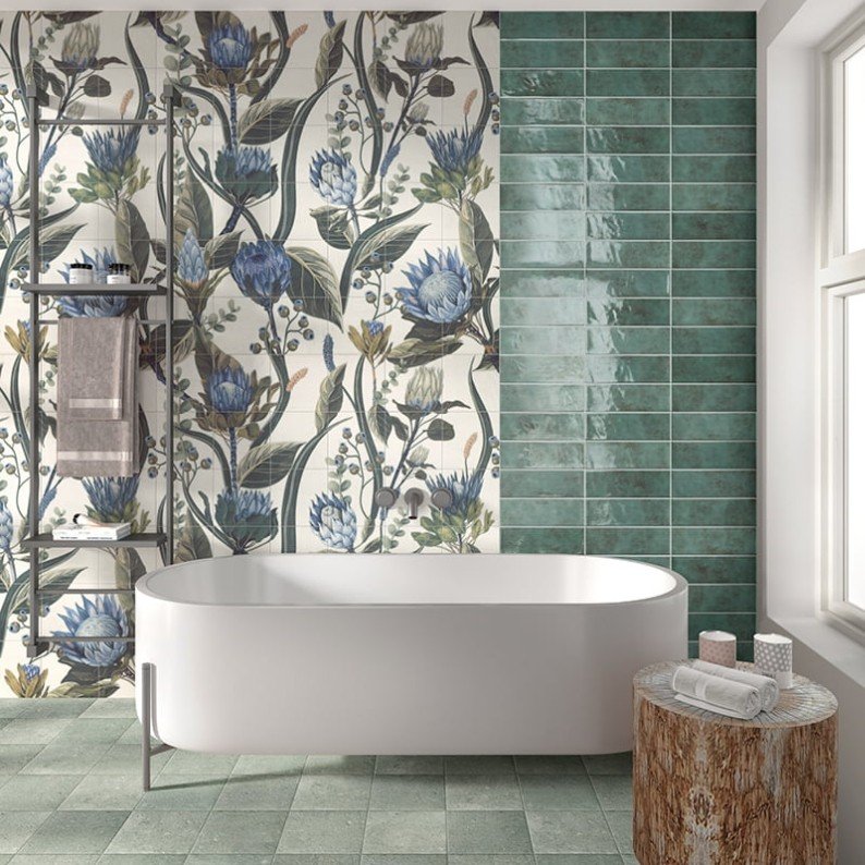 Crie ambientes únicos com murais decorativos. Design estilo papel de parede mas com todas as vantagens da cerâmica: durabilidade, resistência e fácil manutenção.