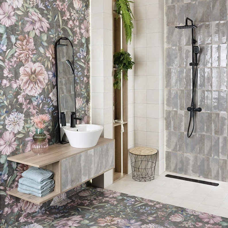 Crie ambientes únicos com murais decorativos. Design estilo papel de parede mas com todas as vantagens da cerâmica: durabilidade, resistência e fácil manutenção.